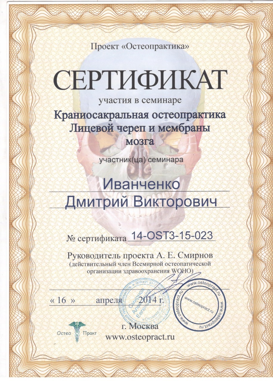 Работа с черепом, с помощью кранио-сакральной терапии (Остеопатия).